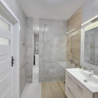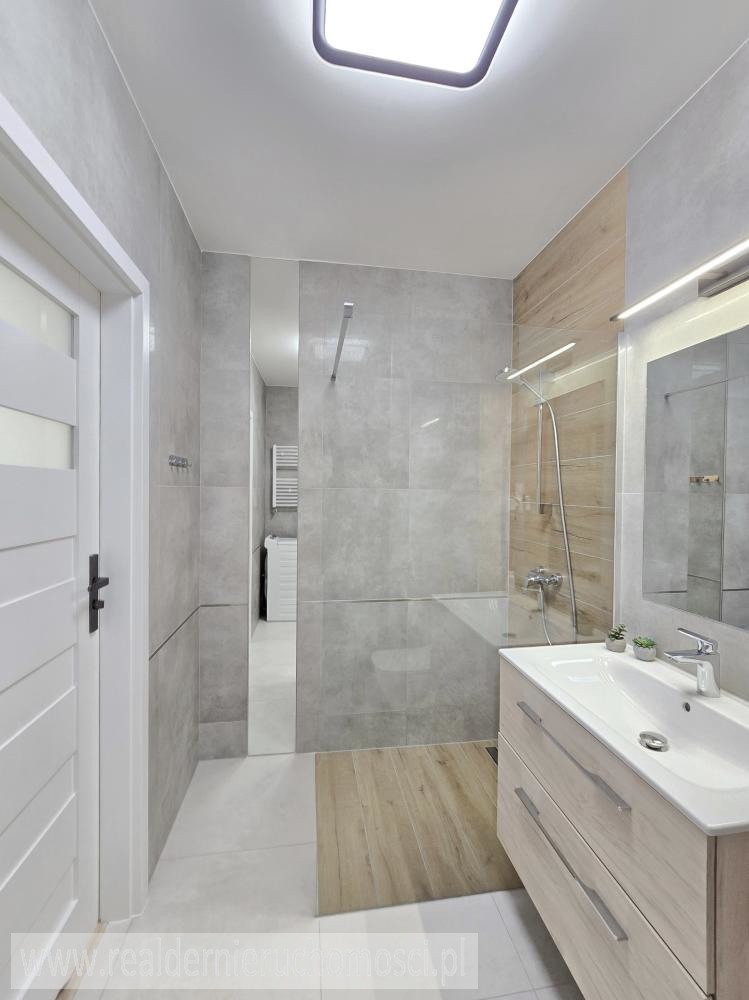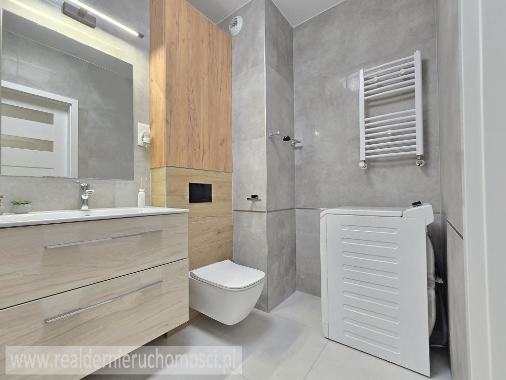 * Łazienka: Wyposażona w kabinę typu walk in oraz pralkę.